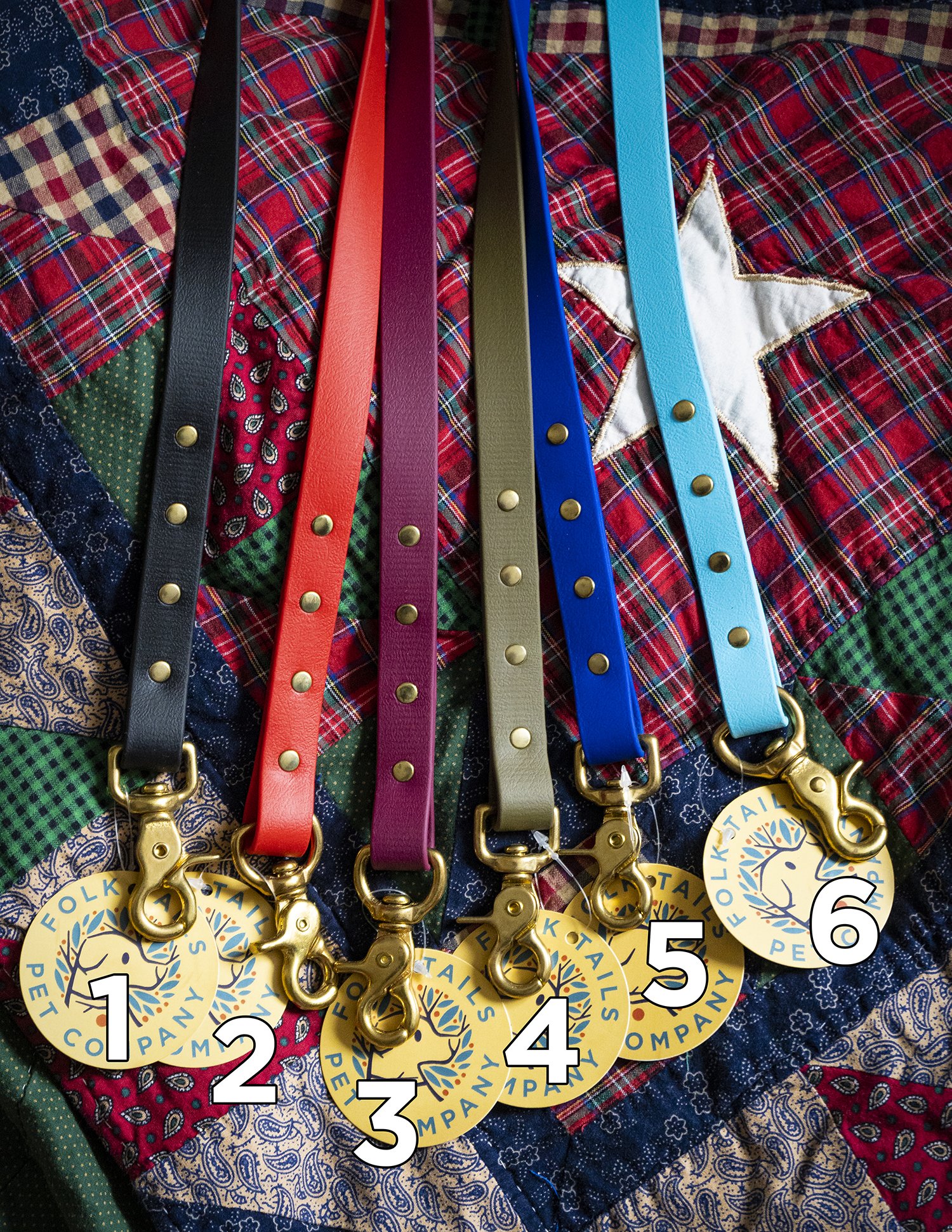 These leashes can easily withstand washing with soap and water. Our solid brass and stainless steel hardware options are extremely durable. Rose gold and matte black hardware is plated.